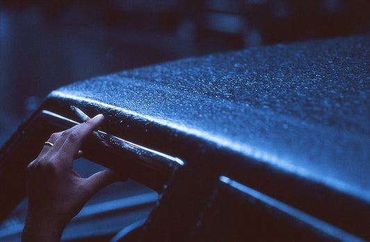 Yellow Car-From The Series Qnew York Bluesq White Modern Wood Framed Art Print with Double Matting by Matthes, Dieter