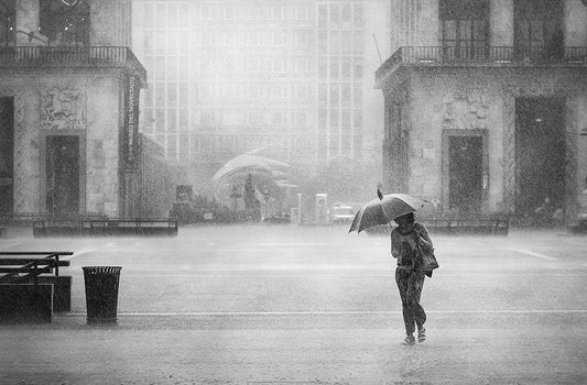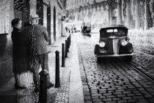 A Hard Raina??S A-Gonna Fall White Modern Wood Framed Art Print with Double Matting by Clothes, Pristine