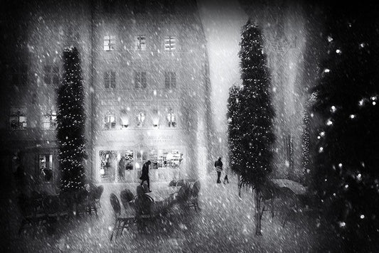 Christmas In The City White Modern Wood Framed Art Print with Double Matting by Schleicher-Schwarz, Roswitha