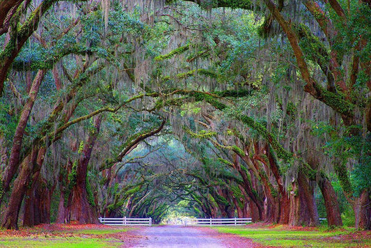 Live Oak Alley-Savannah-Georgia White Modern Wood Framed Art Print with Double Matting by Miller, Anna