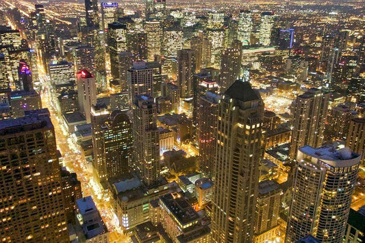 Illinois-Chicago-city view from atop Hancock Tower White Modern Wood Framed Art Print with Double Matting by Molinari, Michele