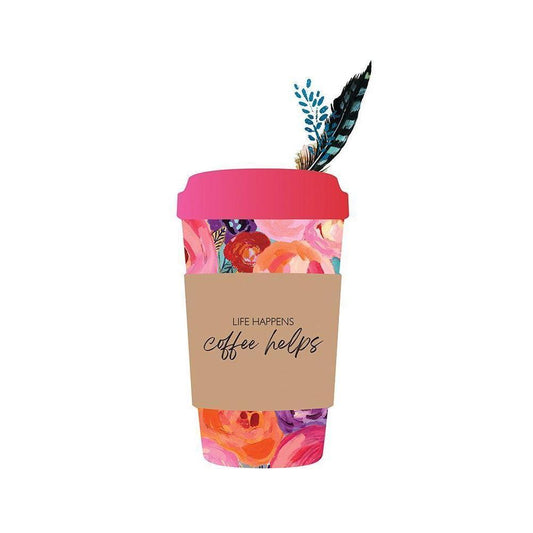 Life Happens Coffee Helps Gold Ornate Wood Framed Art Print with Double Matting by McCully, Jennifer