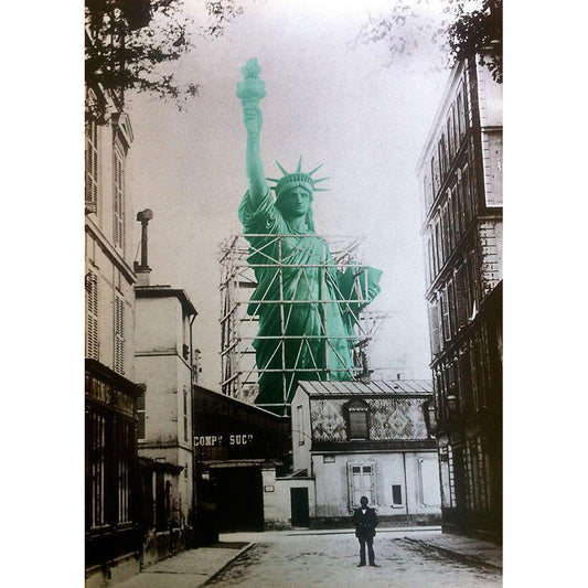 Lady Liberty Construction 1885 Gold Ornate Wood Framed Art Print with Double Matting by Lavoie, Tina