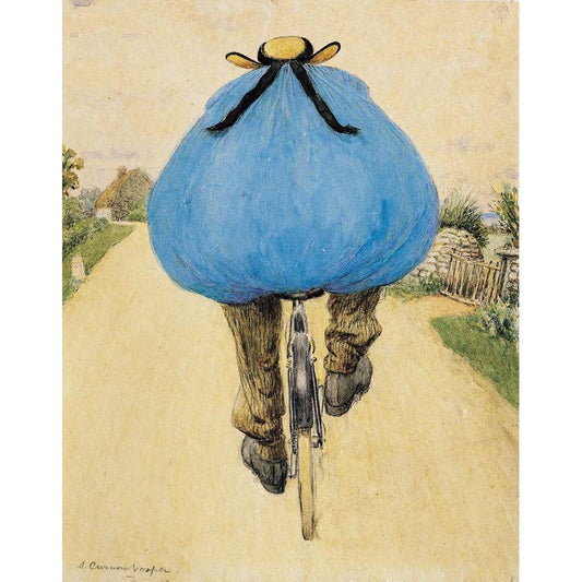 Blue Bicycle Rider Gold Ornate Wood Framed Art Print with Double Matting by Vintage Apple Collection
