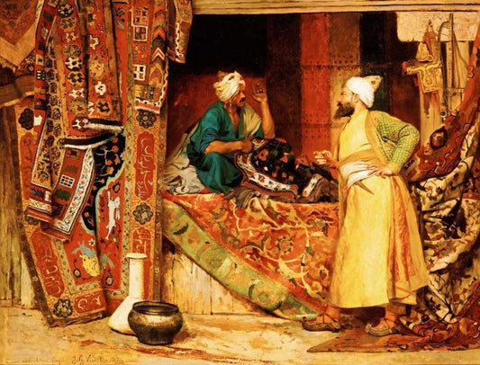 Carpet Seller White Modern Wood Framed Art Print with Double Matting by Vibert, Jean Georges