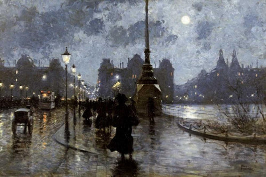 Quai Du Louvre White Modern Wood Framed Art Print with Double Matting by Hassam, Childe