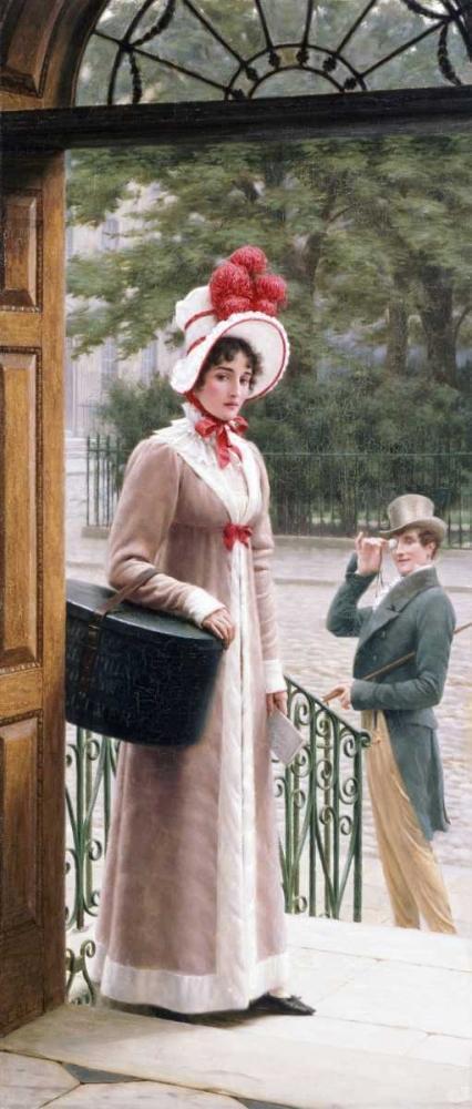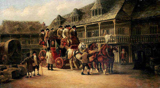 Boarding The Coach To London White Modern Wood Framed Art Print with Double Matting by Maggs, John Charles