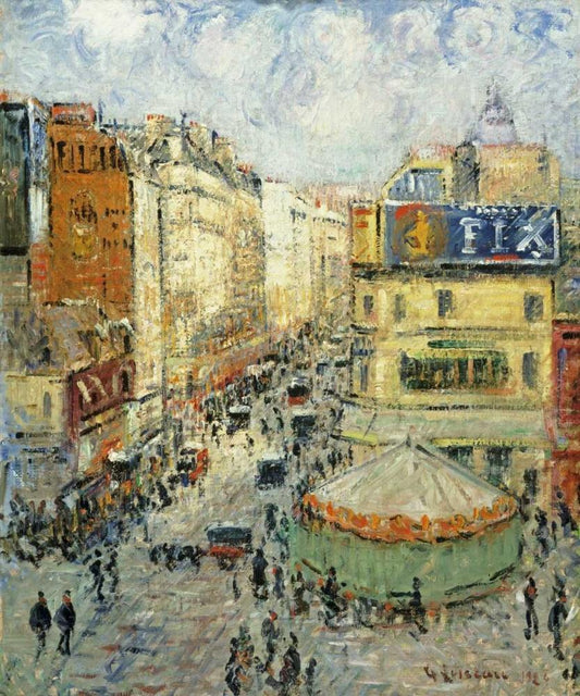 La Rue De Clignancourt White Modern Wood Framed Art Print with Double Matting by Loiseau, Gustave