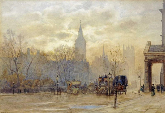 Looking Down Ludgate Hill White Modern Wood Framed Art Print with Double Matting by Marshall, Herbert Menzies
