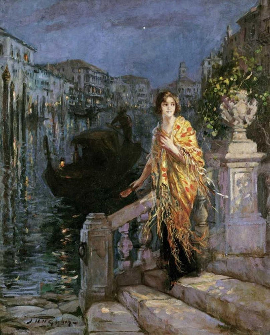 Waiting For The Gondola White Modern Wood Framed Art Print with Double Matting by McGeehan, Jessie M.