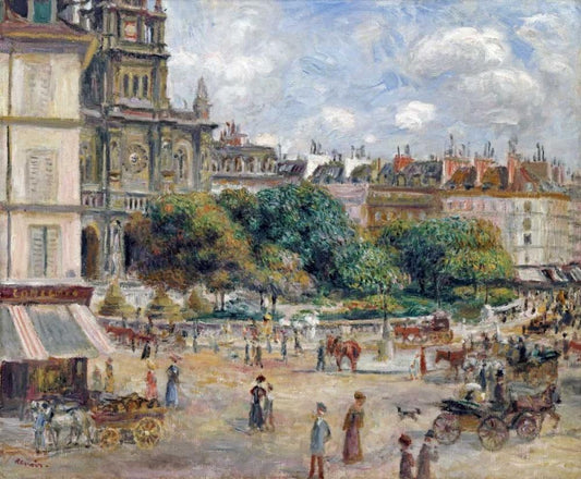 Place De La Trinite White Modern Wood Framed Art Print with Double Matting by Renoir, Pierre-Auguste