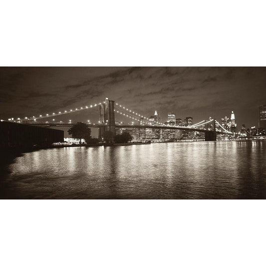 Brooklyn Bridge at Night Black Modern Wood Framed Art Print by Butcher, Dave