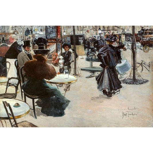 Street scene-Cafe terrace Black Modern Wood Framed Art Print by Abel-Truchet, Louis