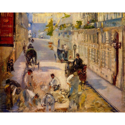 Road workers, rue de Berne Black Modern Wood Framed Art Print by Manet, Edouard