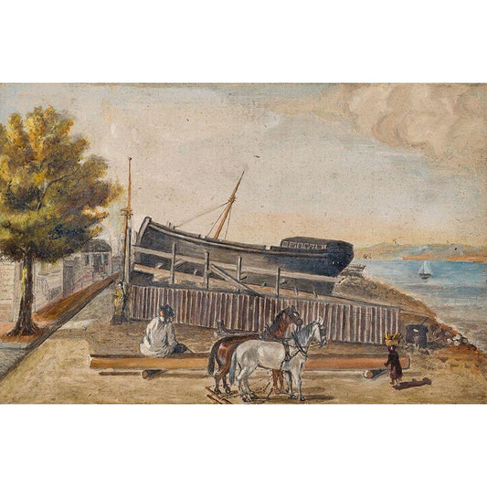 Bergs Ship Yard Black Modern Wood Framed Art Print by Chappel, William P.