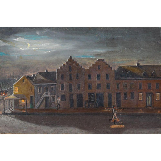 The Lamp Lighter Black Modern Wood Framed Art Print by Chappel, William P.