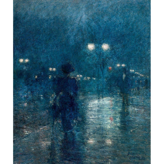 Fifth Avenue Nocturne Black Modern Wood Framed Art Print by Hassam, Childe