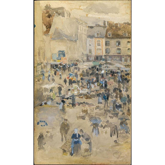 Variations in Violet and Grey—Market Place, Dieppe Black Modern Wood Framed Art Print by Whistler, James McNeill