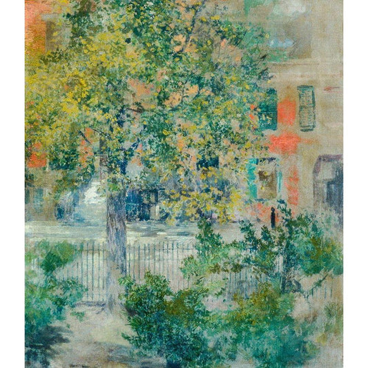 View from the Artists Window, Grove Street Black Modern Wood Framed Art Print by Blum, Robert Frederick
