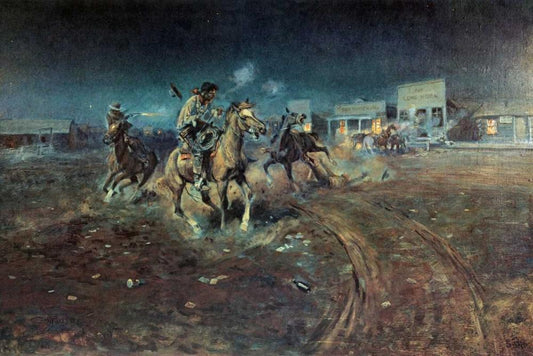 When Guns Speak White Modern Wood Framed Art Print with Double Matting by Russell, Charles M.