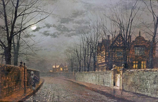 Old English House, Moonlight After Rain White Modern Wood Framed Art Print with Double Matting by Grimshaw, John Atkinson