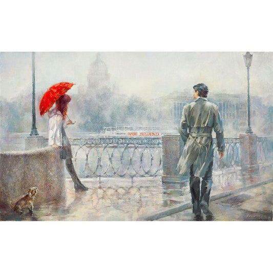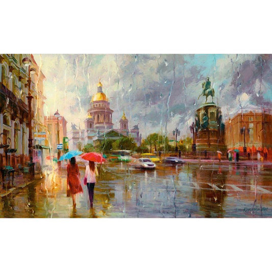 Summer rain in St. Petersburg Black Modern Wood Framed Art Print by Kovalev, Vladimir