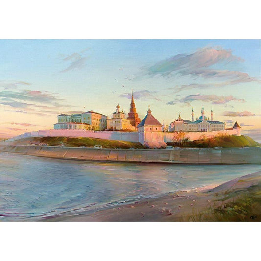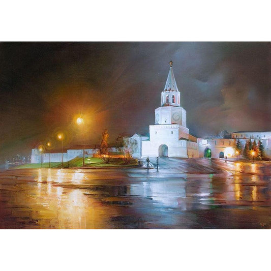 Evening Kazan Black Modern Wood Framed Art Print by Romanov, Roman