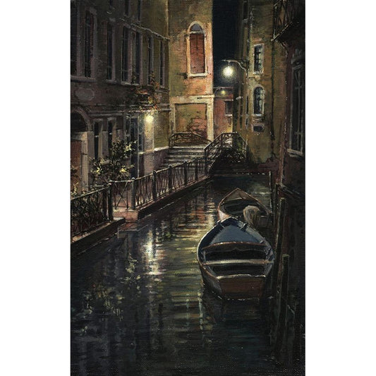 Venice Night Walk Black Modern Wood Framed Art Print by Yushkevich, Viktor