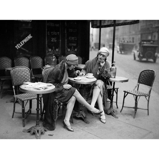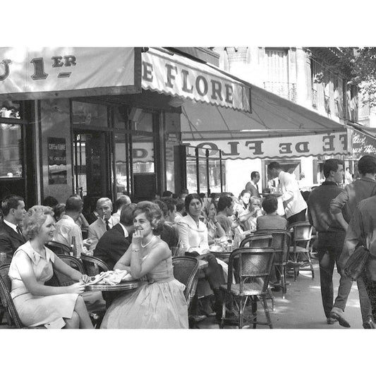 Café En Terrasse Black Modern Wood Framed Art Print by BRAUN Studio