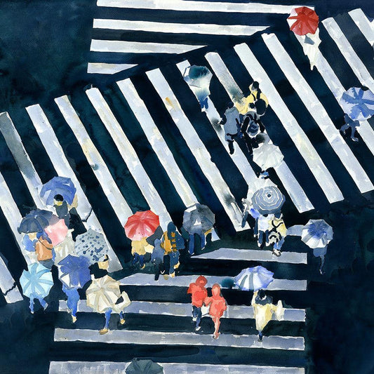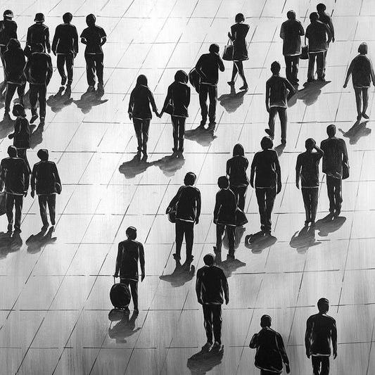 Overhead View of People on the Street Black Modern Wood Framed Art Print by Atelier B Art Studio