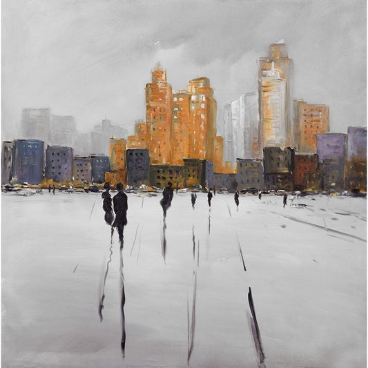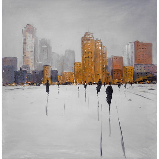 SILHOUETTES WALKING TOWARDS THE CITY Black Modern Wood Framed Art Print by Atelier B Art Studio
