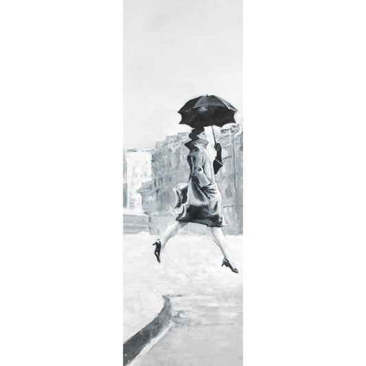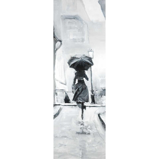 Woman in the Rain Black Modern Wood Framed Art Print by Atelier B Art Studio