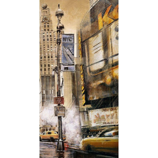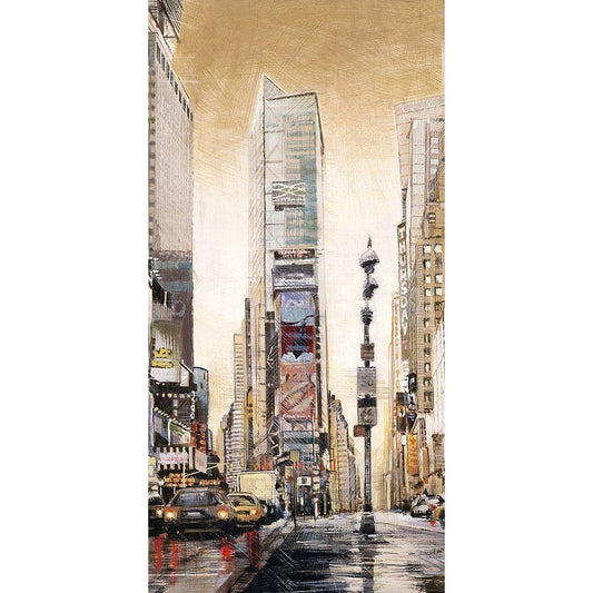 TIMES SQUARE WITH SKYSCRAPERS Black Modern Wood Framed Art Print by Atelier B Art Studio