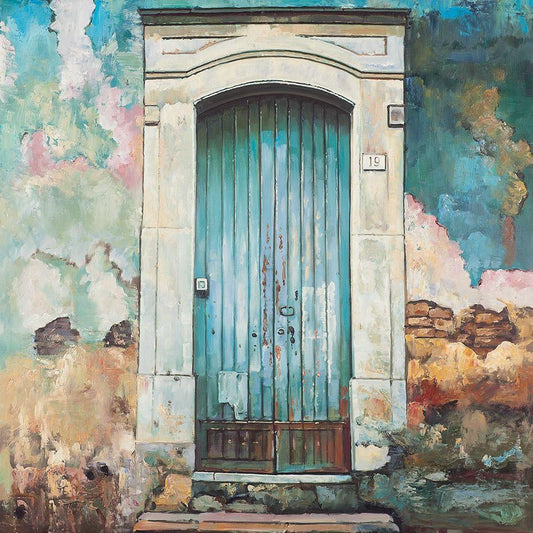 BLUE DOOR OF AN OLD BUILDING Black Modern Wood Framed Art Print by Atelier B Art Studio