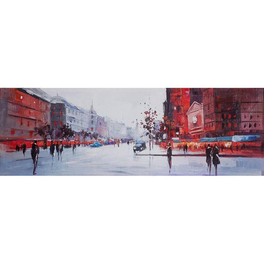 BLACK AND RED STREET SCENE Black Modern Wood Framed Art Print by Atelier B Art Studio