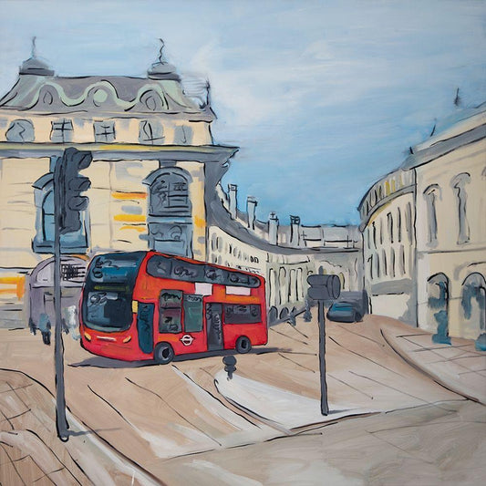 LONDON BUS AND TELEPHONE BOOTH Black Modern Wood Framed Art Print by Atelier B Art Studio