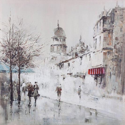 STREET IN MONTMARTRE IN PARIS Black Modern Wood Framed Art Print by Atelier B Art Studio