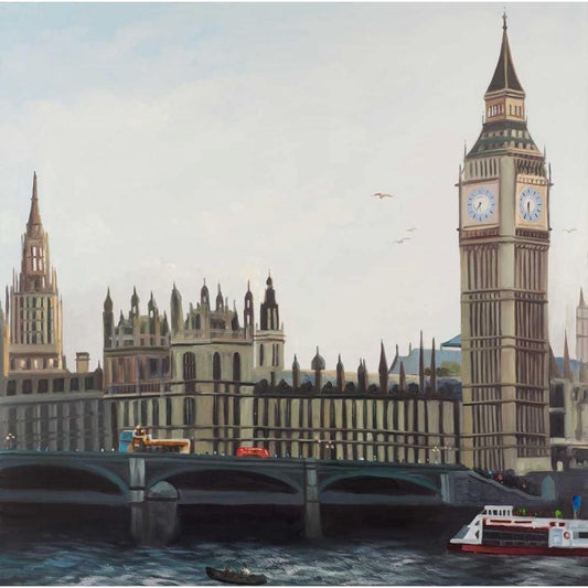 Big Ben in London Black Modern Wood Framed Art Print by Atelier B Art Studio