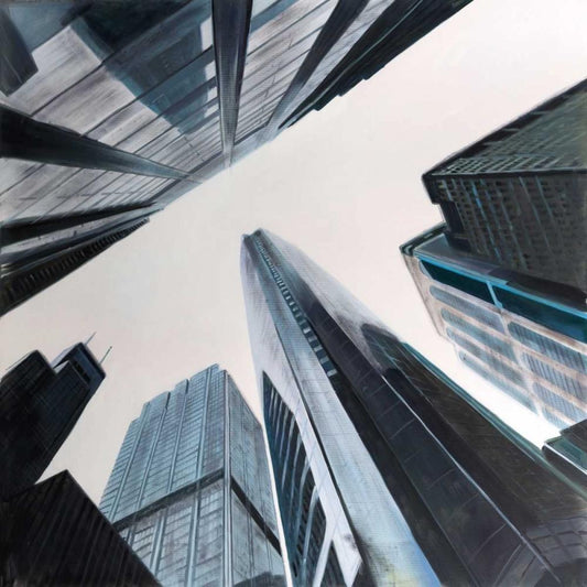 Perspective View of Skyscraper Black Modern Wood Framed Art Print by Atelier B Art Studio