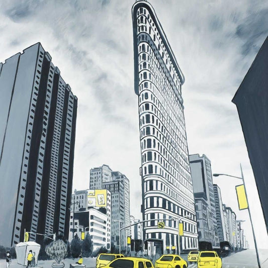 Outline of Flatiron Builing to New-York Black Modern Wood Framed Art Print by Atelier B Art Studio