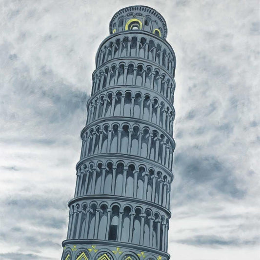 Outline of Tower of Pisa in Italy Black Modern Wood Framed Art Print by Atelier B Art Studio