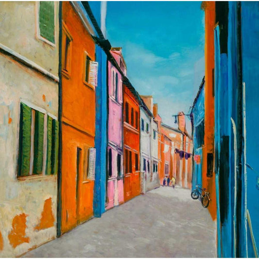 Colorful Houses in Italy Black Modern Wood Framed Art Print by Atelier B Art Studio