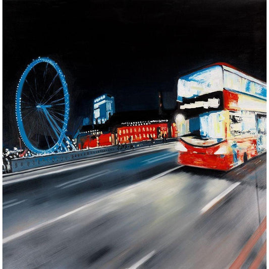 BUS TRAVEL BY NIGHT Black Modern Wood Framed Art Print by Atelier B Art Studio