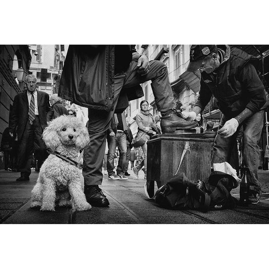 Antonio-Ultimo Lucidascarpe Di Napoli Black Modern Wood Framed Art Print by Grambone, Antonio