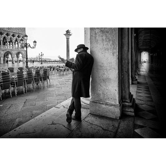Mister B. Still Reads Newspapers Black Modern Wood Framed Art Print by Schleicher-Schwarz, Roswitha