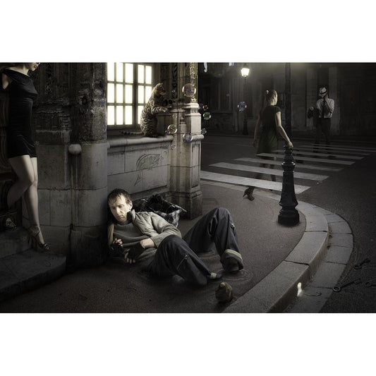 Late Night Shopping Black Modern Wood Framed Art Print by Repelnig, Hans