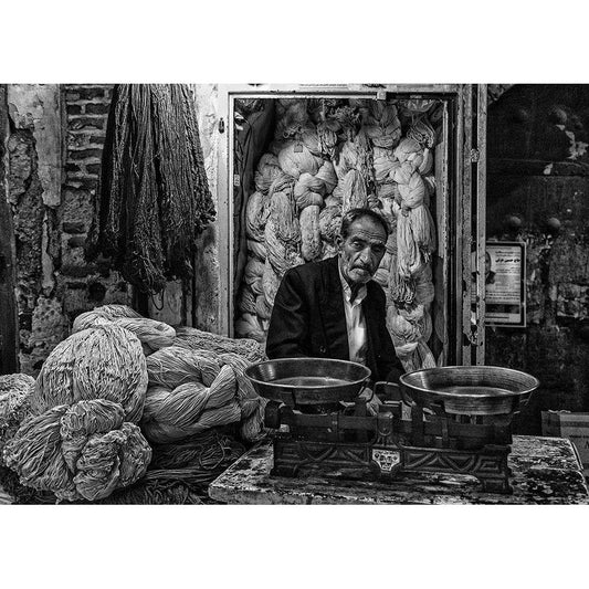 Rope Seller In A Bazaar (Iran) Black Modern Wood Framed Art Print by Inazio Kuesta, Joxe