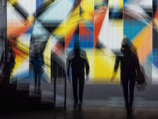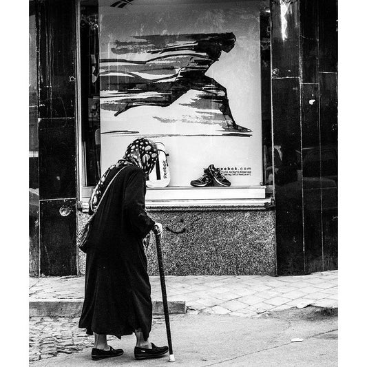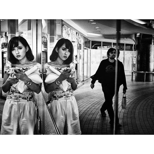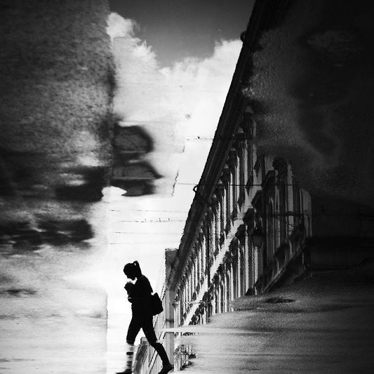 Reflection On The Street Black Modern Wood Framed Art Print by Sekulic, Dragoslav