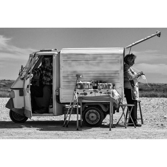 Street Cooking Black Modern Wood Framed Art Print by Marin, Rodrigo