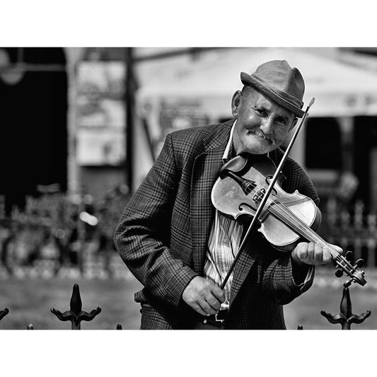 A Street Musician Black Modern Wood Framed Art Print by Vodnansky, Zdenek